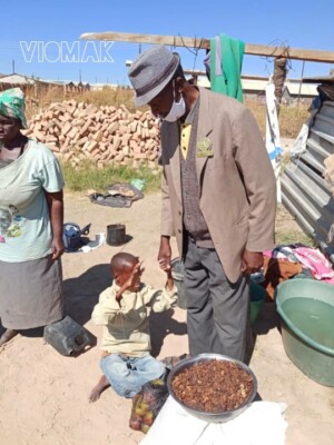 Following corona virus covid19 national lockdown in Zimbabwe, life has become more and more unbearable for many suffering and poverty stricken Zimbabweans and Viomak has seen an influx of desperate cases for help. In May 2019 a well-wisher contacted Viomak and informed her that Chief Mutekedza in Chivhu, Zimbabwe is struggling with helping a lot of needy families in his area many of who are physically challenged and he doesn’t have enough resources to meet all their needs. On behalf of Hope for Zimbabwe Children (HFZC), Viomak spoke to Chief Mutekedza and his wife Abigirl who said there are around 29 very desperate families in their village who are desperate for various help ranging from basic food to wheelchairs. Chief Mutekedza and his wife distribute dried vegetables (mufushwa) and mealie meal to the needy families as per routine. Viomak sent cash donations to Chief Mutekedza and his wife to help them feed the families. Viomak also arranged a visit to Chivhu and some families in need explained face to face their situations and what help they need to Hope for Zimbabwe Children.
