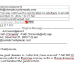 On 15 December 2005 Viomak donated ZW$15 840 000.00 to Mutemwa Leprosy Care Centre in Mutoko for Christmas groceries. Viomak worked with Faith Chimanda, a volunteer she has not met to ensure the patients have a merry Christmas. Mutemwa Leprosy Care Centre is home to 90 or more patients who have suffered severe deformity and are disabled and destitute .Some have lost limbs and others have been blinded by the disease. Due to the economic crisis resulting from bad governance, a drug as simple as dapsone which treats leprosy and can be administered in a home is hard to come by. Many patients suffer in silence with no hope for better futures and rely on donors like Viomak to assist them lead better lives.>