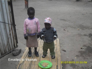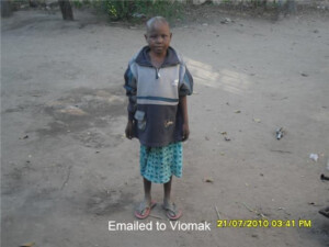 In June 2010 Viomak donated cash for groceries to an orphaned physically challenged 14 year old girl, Laina and orphaned Chitinha twins through Mwana Trust, Mutare. Laina is chronologically aged 14 years 10 months but operates far below her chrological age.Viomak also bought stationery for Laina to support with her educational needs. Laina is an example of how vulnerable physically challenged children are neglected by the government in Zimbabwe. Through an assessment initiated by Mwana Trust it was established that both Laina’s parents are deceased and she is currently staying with her maternal grandmother, Anne aged 86 years who happens to be a widow. Laina who has never attended school, also lives with three cousins and an aunt aged 23 years who help with everyday chores. After her father denied paternity, the mother could not afford hospital fees and general immunization and Laina never developed speech since birth. Laina has good hearing ability but cannot verbally respond meaning her speech has not developed. She vocalizes but can not produce coherent speech. She follows instructions with high accuracy but she has difficulty holding items such as pens which shows poor fine motor skills. Laina’s fine motor skills are at the level of a 0-1 year old child. She can pick up a cup but can neither build a tower of 2 to 6 blocks nor can she fold paper once in imitation. Laina’s relationship skills are at the level of a 2-3 year old child. She can label self-feelings, show desire to please caregiver and follow adult requests about half the time. Her expressive language is at the level of a 0-1 year old. She can wave bye-bye but cannot repeat words asked when asked nor can she imitate environmental sounds. Laina’s receptive language is at the level of a 3-4 year old child. Laina is able to bring objects when they are named, for example pen, and she can point accurately when asked, for example, show me your fingers, eyes and teeth. Laina can correctly answer that she is a girl through nodding her head. Her gross motor skills are at the level of a 1-2 year old child. Laina can not walk but rather crawls around the yard to grab items as in the images, neither can she jump or walk backwards. Laina’s self-help skills are at the level of a 4-5 year old child. Laina can indicate toilet needs, lift a cup and drinks from it and she can also eat using a spoon. The ADLO test indicates that her expressive language is below 1 year old. It was therefore recommended that Laina attend grade 1 as soon as possible so that she can grasp basic skills in reading and maths and at the same time help her to socialize with others. Laina also has to visit a surgeon who will examine her speech organs e.g. tongue, upper and lower pallets to determine her lack of tongue movement and word production. Laina also needs an assistive device in the form of a wheel chair to support her mobility.